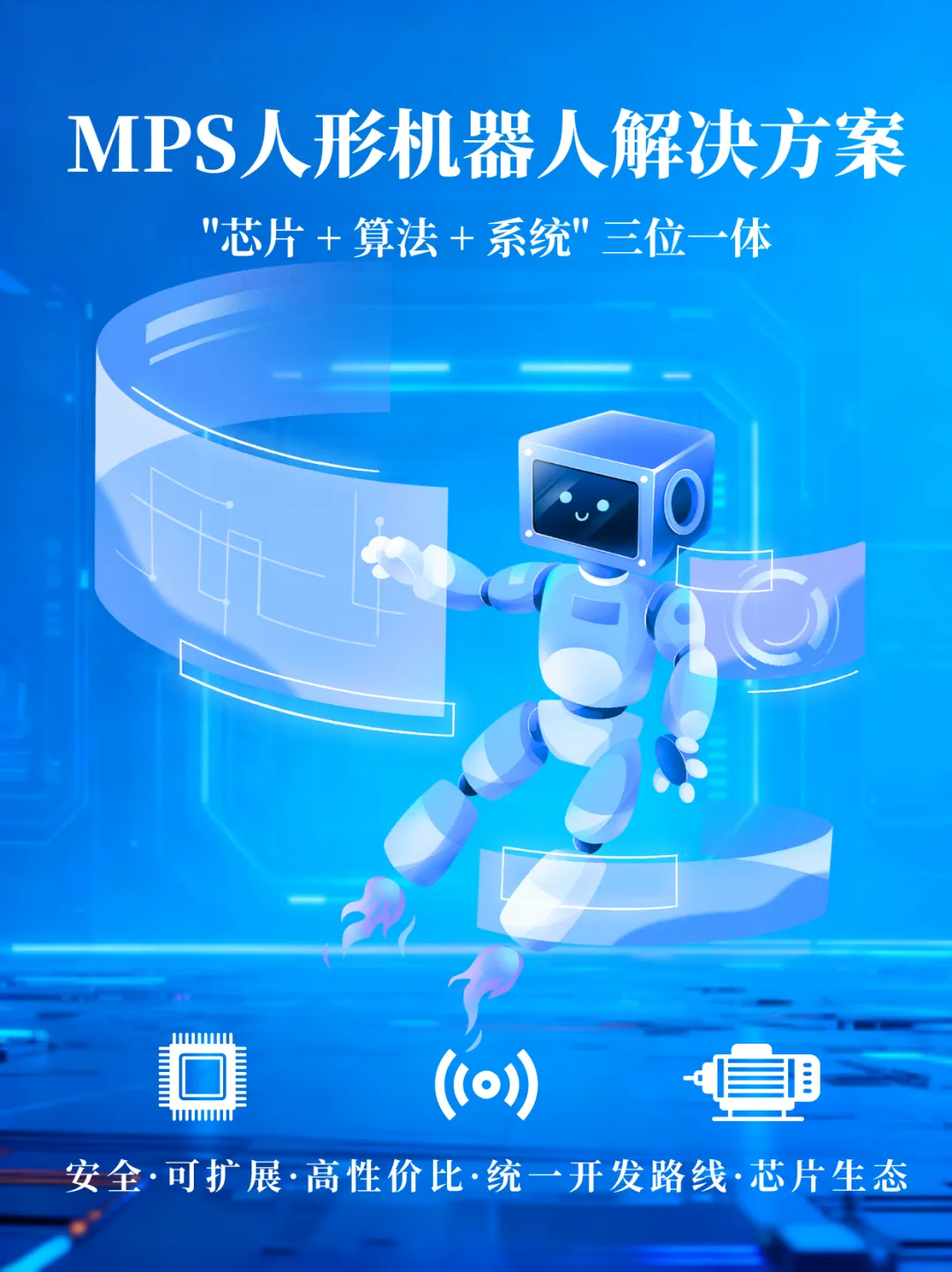 要系統(tǒng)性地解決以上挑戰(zhàn),離不開底層硬核技術(shù)的支撐。MPS發(fā)布的人形機(jī)器人解決方案,直指上述痛點(diǎn),其核心思路正是“芯片 + 算法 + 系統(tǒng)”三位一體的協(xié)同創(chuàng)新,覆蓋電機(jī)驅(qū)動、高精度傳感、集成化模組全場景,助力客戶快速落地安全可靠的具身智能產(chǎn)品~